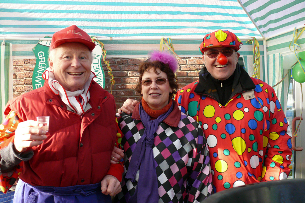 Am Karnevalssonntag - 03. Februar 2008 - trieb das närrische Treiben in Stommeln bei kalten Temperaturen aber herrlichem Sonnenschein mit dem Straßenumzug seinem Höhepunkt zu. Traditionell trafen sich viele TCS'ler am Stand von Grün-Weiss vor dem Hause Golisch (hier im Bild unser Präsident Bernd mit Gattin Heidrun und Wolfgang Bender -vr-). Die "Lila Funken" sorgten für gute Stimmung im Zug - Startpunkt war wie in den Vorjahren das "Biwak" mit der Maigesellschaft im Clubhaus. Aktuelle Bilder in der Fotogalerie.